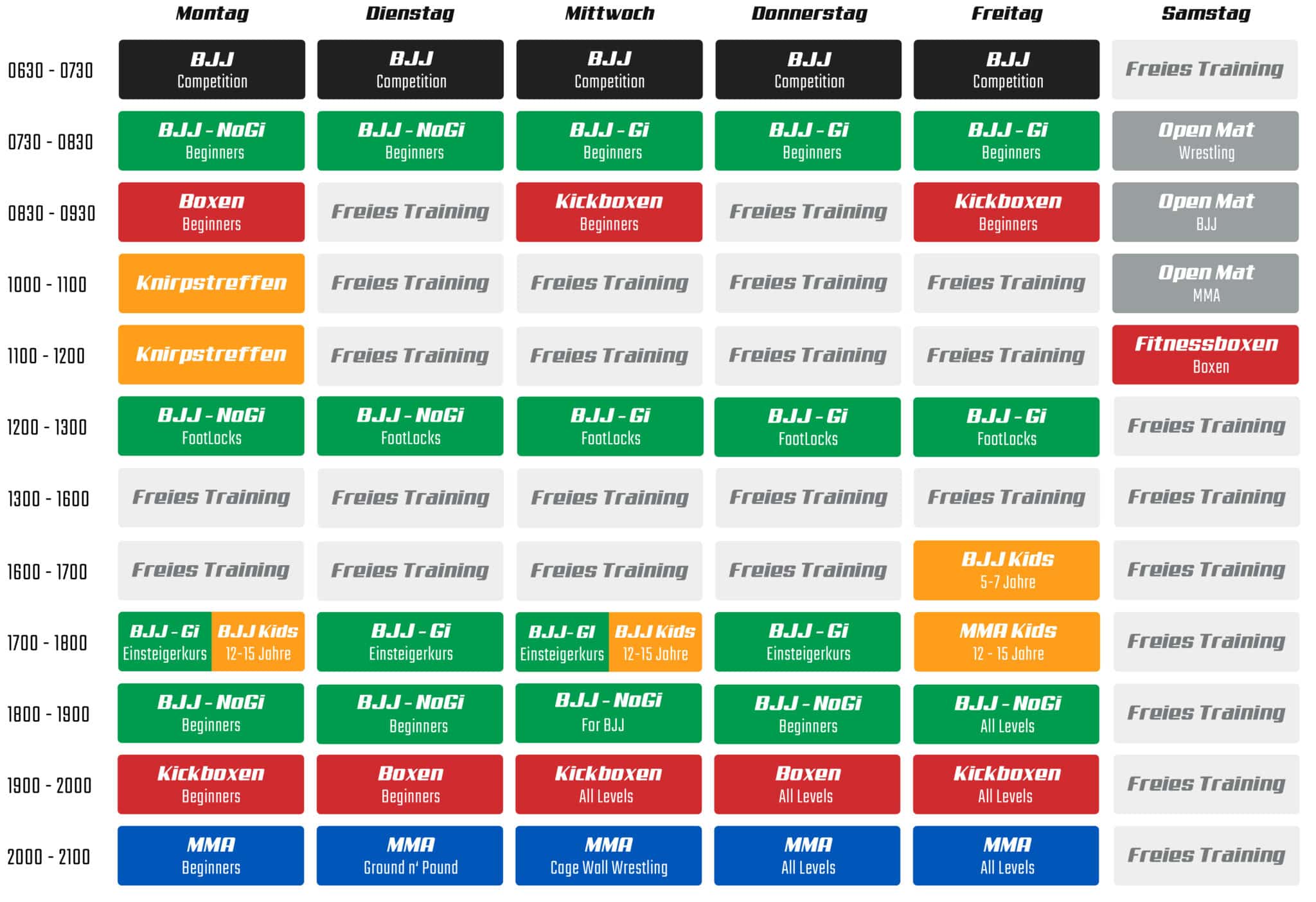 Hier findest du alle Trainingszeiten der Zitadelle. Melde dich noch heute für ein kostenloses Probetraining.