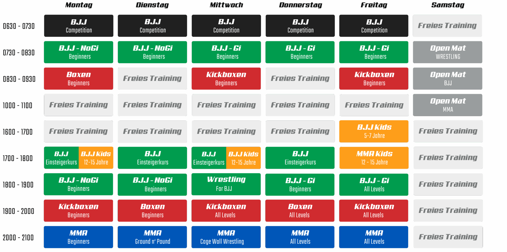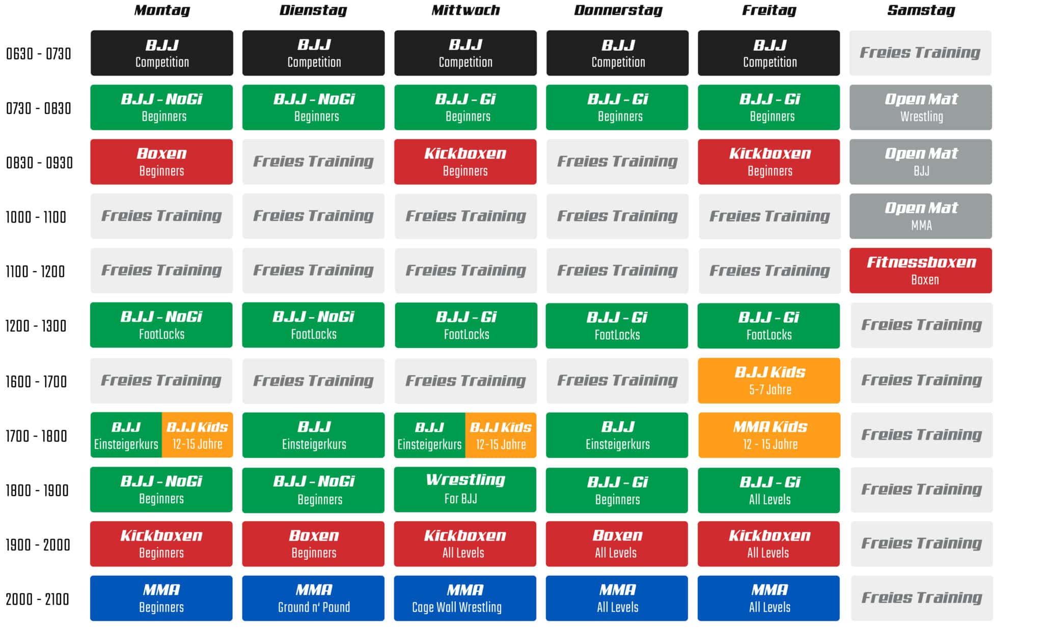 Hier findest du alle Trainingszeiten der Zitadelle. Melde dich noch heute für ein kostenloses Probetraining.